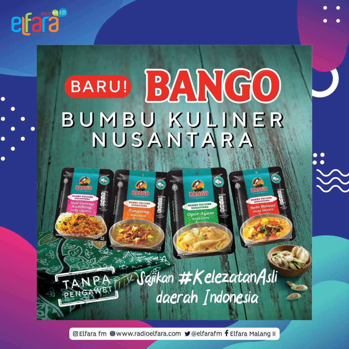 98 6 Elfara Fm En Twitter Baru Bango Bkn Bumbu Kuliner Nusantara Inovasi Bumbu Terbaru Dari Bango Ada 4 Variant Sekaligus Soto Betawi Tongseng Nasi Goreng Kambing Dan Opor Ayam Bango Bumbu Kuliner